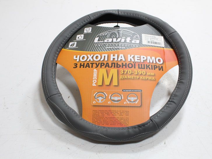 Оплётка на руль M серый кожа LA 26-B410-4-M