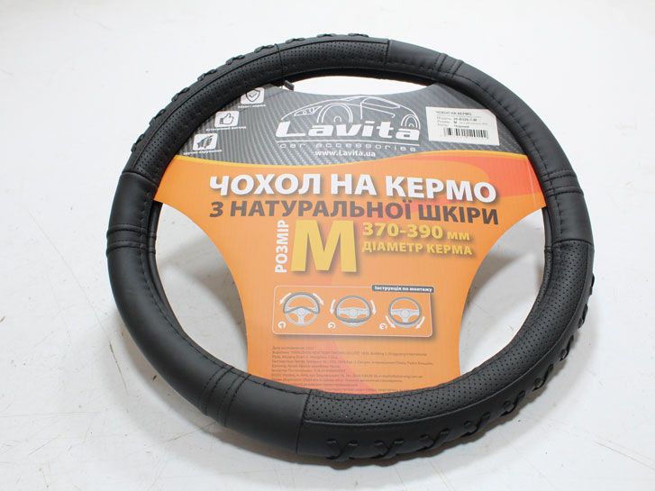 Оплётка на руль M черный кожа LA 26-B401-1-M