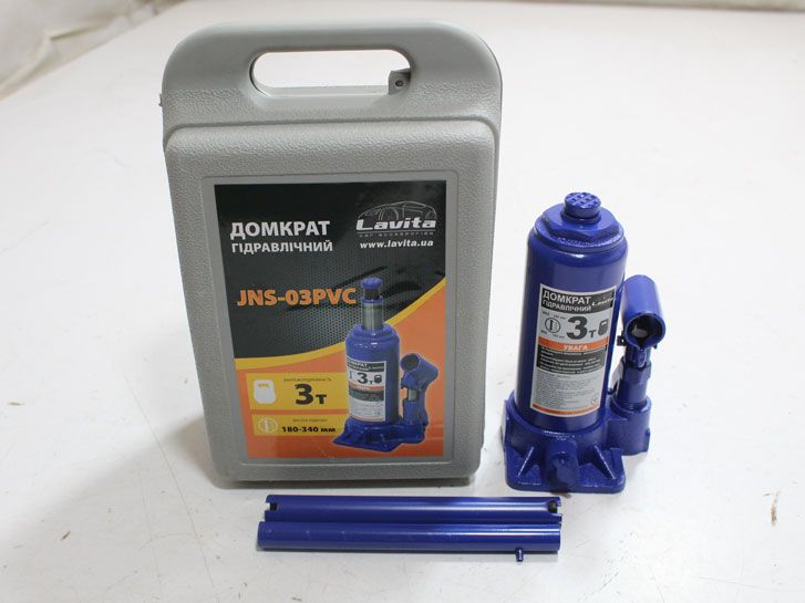 LA JNS-03PVC Домкрат Lavita LA JNS-03PVC Домкрат гідравлічний пляшкового типу може використовуватися не тільки під час ремонту автомобіля, а й при проведенні будівельних та такелажних робіт. При роботі з домкратом рекомендується використовувати страхувальні підставки для надійної фіксації вантажу, а також стоянкові башмаки. Характеристики: Бренд Lavita Тип Гідравлічний пляшковий домкрат Вид вертикальні(пляшкові) Вантажопідйомність 3 т Висота зацепа 180 мм Максимальна висота підйому 340 мм Кількість штоків 1 Матеріал підйомної поверхні метал Підйомна рукоятка приводна ручка Вага 3.1 кг Упаковка пластиковий кейс