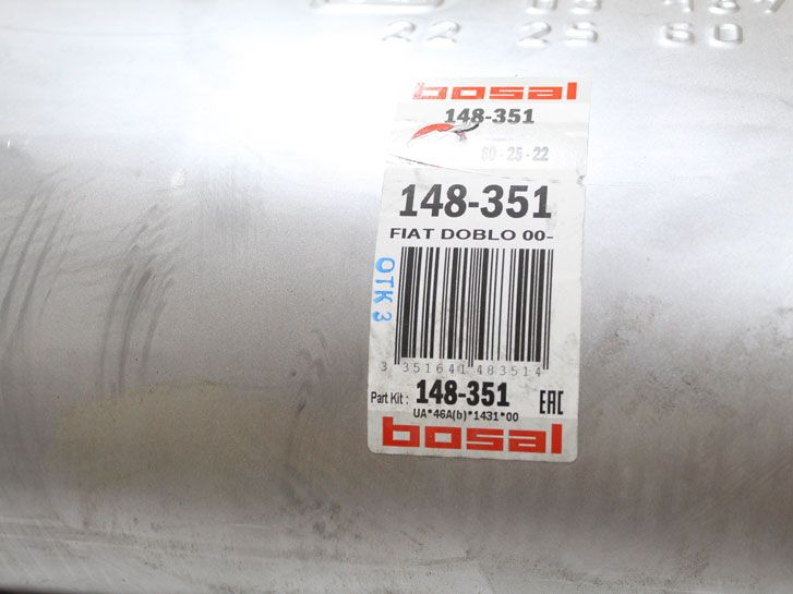 Глушитель Фиат Добло (Fiat Doblo) 1.9 JTD 00-13 (148-351) Bosal 07.451 Крос-номера: 46 826 932,51 740 052,71 765 083,51740052,71765083 Модифікація авто: 1.3 D Multijet, 1.3 JTD 16V, 1.3 JTD 16V Multijet, 1.9 D Multijet, 1.9 JTD, 1.9 JTD (223AXE1A), 1.9 JTD (223ZXE1A), 1.9 JTD Multijet Матеріал: Алюмінізованна сталь Країна виробник: Україна Код двигуна: 182 B9.000, 186 A9.000, 188 A8.000, 188 A9.000, 199 A2.000, 223 A7.000, 223 A9.000, 223 B1.000, 223 B2.000 Потужність (к.с.): 70, 75, 84, 100, 105, 120 Потужність (кВт): 51, 55, 62, 74, 77, 88 Тип приводу: Привід на передні колеса Марка: Fiat Модель: Doblo Об'єм двигуна: 1.3, 1.9 Рік випуску: 2004, 2005, 2006, 2007, 2008, 2009, 2010 Паливо: Дизель Тип кузова: Фургон / універсал вен Деталь: Глушник POLMO 07.451