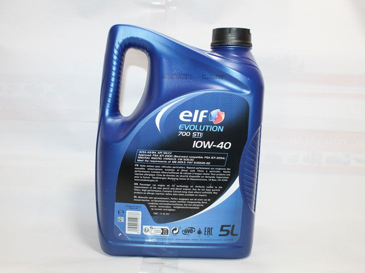 Масло моторное полусинтетическое 10w40 (5Л) ELF EVOLUTION 700 STI Високоефективна моторна олива синтетичної технології, що спеціально розроблене для бензинових та дизельних двигунів. Рекомендується для всіх бензинових та дизельних двигунів як легкових авто так і мінівенів. Спеціально пристосована до вимог сучасних технологій дизельних двигунів, а саме безпосереднього вприску з або без common rail (загальною паливорозподільною рампою). Повністю адаптована до всіх видів застосувань та до екстремальних умов використання. Опис продукту: Забезпечення тривалої та стабільної продуктивності двигунів, таким чином, задовольняються потреби виробників двигунів з точки зору збільшеного інтервалу заміни олив. Чудові миючі властивості, що забезпечують більшу чистоту двигуна для його кращої роботи. Спеціально розроблена для задоволення особливих вимог до двигунів прямого впорскування. Олива здатна захистити двигун за високих температур. Відмінна продуктивність при високій температурі та швидке змащення компонентів двигуна під час холодних запусків. Міжнародні специфікації ACEA A3/B4 API CF API SN Схвалення PSA B71 2300 RENAULT RN0700 RENAULT RN0710 VW 501.01 VW 505.00 Відповідає вимогам FIAT 9.55535-G2 MB-229.3 Зворотня сумісність PSA B71 2294