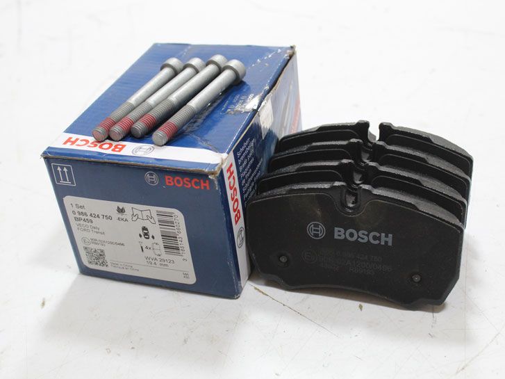 Оригинальные задние тормозные колодки BOSCH (серия BP459) для коммерческого транспорта. Обеспечивают эффективное торможение при высоких нагрузках, устойчивы к износу, соответствуют стандарту ECE?R90. Имеют противошумные пластины и крепёж в комплекте. Характеристики: Артикул: 0986424750 Производитель: BOSCH Назначение: Тормозные колодки заднего моста (комплект) Тормозная система: дисковая (Brembo) Материал: низкометаллический Стандарт: ECE?R90 Размеры: – Ширина: 109,5?мм – Высота: 63,8?мм – Толщина: 20,6?мм Комплектация: с противошумными пластинами и болтами Применяемость: – Ford Transit (V347/V348, V363) — заднеприводные версии – Iveco Daily III, IV (29L, 35C, 35S и др.), 2002–2007 гг. OEM?номера: – Ford: 1501265, 8C1V2M008AA – Iveco: 2991667, 42470841, 42555406, 42560080, 42561101, 42561102, 42576680 Кросс-коды: – BOSCH: 0986424750 / BP459 – Valeo: 872016 – GH: 411012 – WVA: 29123