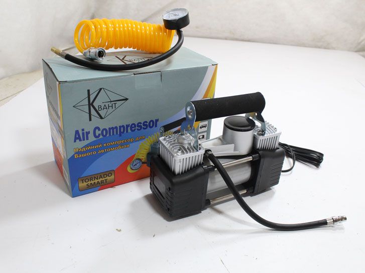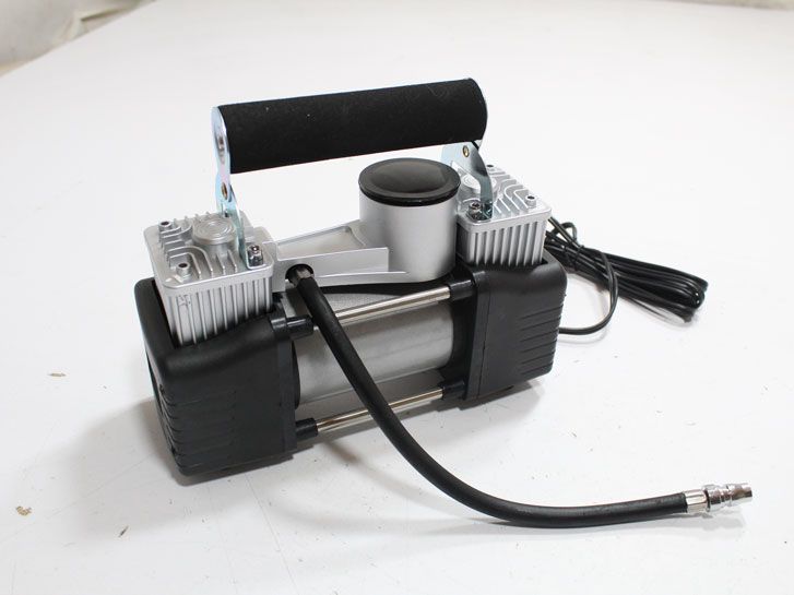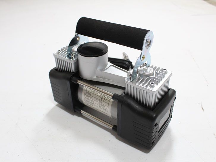 Компрессор автомобильный ДВУХЦИЛИНДРОВЫЙ 12В с аналоговым датчиком давления, мощность 180W, давление 150 PSI, производительность 65л/мин