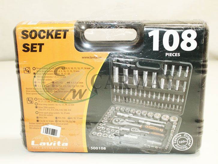 Lavita LA 500108 складається з інструментів. У його комплектацію входить широке типове різноманіття ручного інструменту, торцевих головок і біт, завдяки чому набір буде корисний починаючи з побутового застосування, закінчуючи майстерні з ремонту автомобілів. У комплекті представлені системи інструментів із двома розмірами приєднувальних квадратів 1/2" і 1/4". Це забезпечує широкий розмірний діапазон торцевих головок, великий асортимент ручних і допоміжних інструментів, що в свою чергу дає практично безмежні можливості комбінування збірного інструменту залежно від складності і місця розташування нарізного сполучення. набір в пластиковий кейс, який служить зручним аксесуаром для компактного зберігання та транспортування набору.Комплектація:Інструменти 1/4"- головки торцеві 6-гр 6/7/8/9/10/11/12/13 мм- головки торцеві Е стандарт - E4/E5/E6/E7/E8- тріскачка на 45 зубів прапорцевим перемикачем реверсу і кнопкою швидкого скидання- комірець ковзний- комірець прямий з рукояткою- карданний-ключ HEX 1.5, 2, 2.5 мм - головки з насадками - SL - 4 / 5.5 / 7 мм / PH1, PH2 / PZ1, PZ2 / Torx - T8 / T10 / T15 / T20 / T25 / T27 / T30 / шестигранні - 3,4,2 торцеві 6-гр - 10/11/12/13/14/15/16/17/18/19/20/21/22/24/27/30/32 мм-головки 6-гр продовжені - 14/15/17/19/22 мм- свічкові головки 16 перемикачем реверсу і кнопкою швидкого скидання - підовжувачі 125 мм і 250 мм - шарнір карданний - біти 5/16" - PZ3, PZ4 / Torx - T40 / T45 / T50 / T55 / T60 / шестигранні - 7/8/10/12/12/12/12/12/12 PH4 - адаптер для біт - HEX 1/2" (F) -5/16"